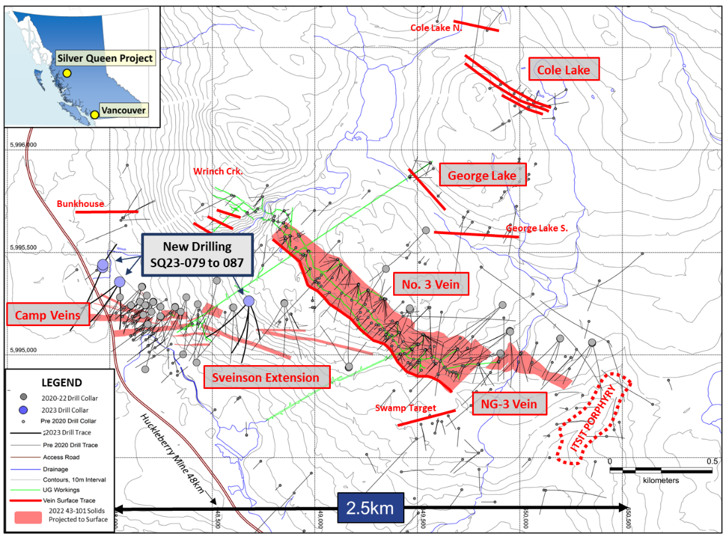 VP Exploration Rob Macdonald commented, “Work on the Silver Queen project through 2023 continues the systematic delineation of new mineralization throughout the property through a combination of extending currently known veins as well as drill testing new targets developed through compilation of historical data and recent surface work on the property. The property already contains a significant existing mineral resource base that was updated in 2022, doubling the earlier 2019 resource, which we believe will increase with the further development and exploration of these new targets. Today’s news appears to support our view.”