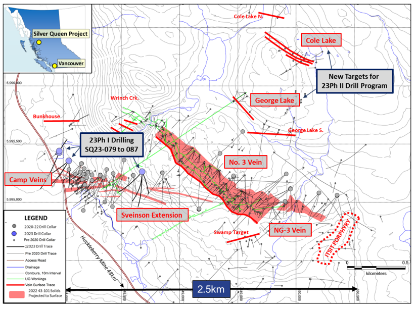 Equity Metals Corporation (TSX.V: EQTY) (“Equity”)reports today that crews have mobilized and drilling has resumed on it’s 100% owned Silver Queen Ag-Au project, located in central British Columbia. This is the second phase of drilling on the property in 2023 and will focus on the initial delineation of two new targets located to the northeast of, and not included in, the earlier 2022 updated Mineral Resource estimate on the property.