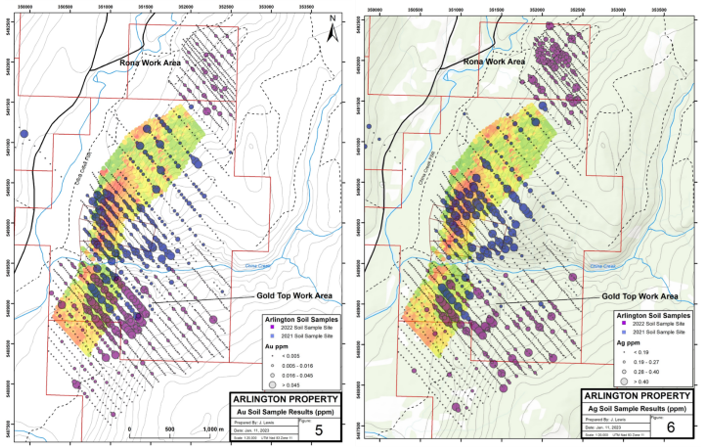 Figure 3 - Gold and Silver Soil Sampling Results from 2022/3