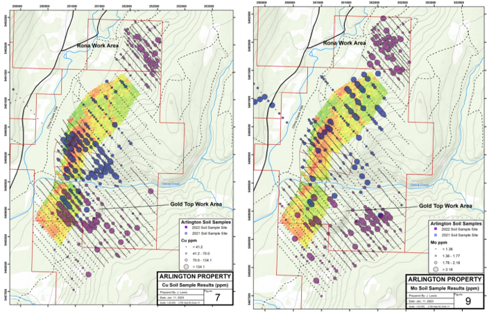 Figure 4 - Copper and Molybdenum Soil Sampling Results from 2022/23