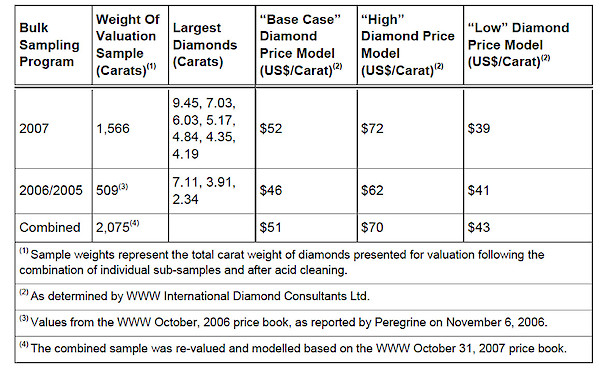Peregrine contracted WWW to value the diamond parcels and perform price modelling.